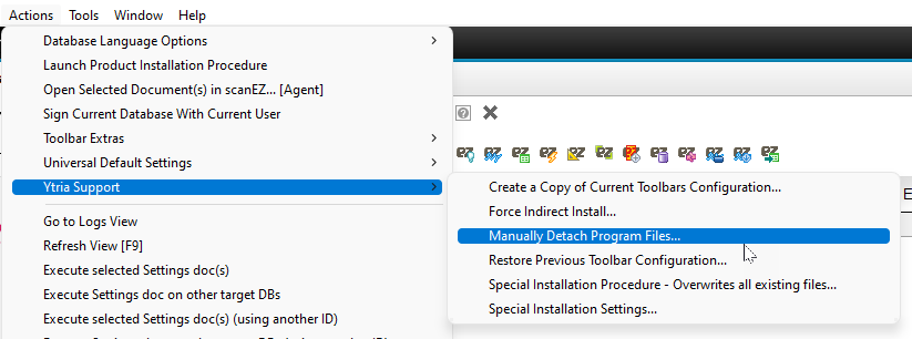 - Manually Detach Program Files...: This launches a dialog where you can retrieve all the sundry parts of a Ytria software installation and manually move them.