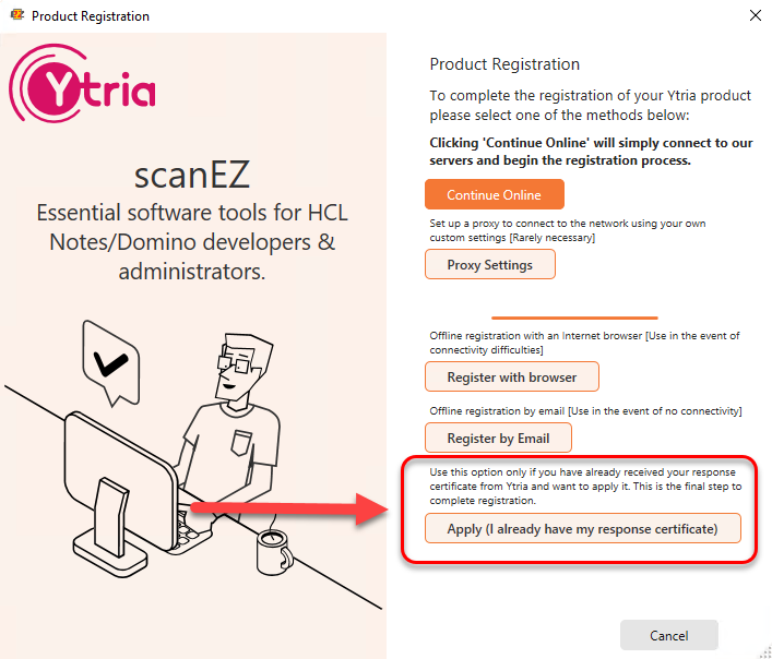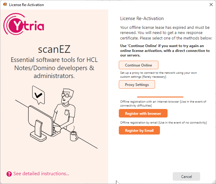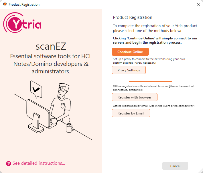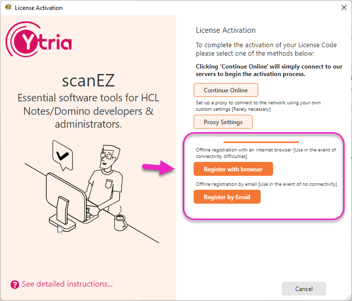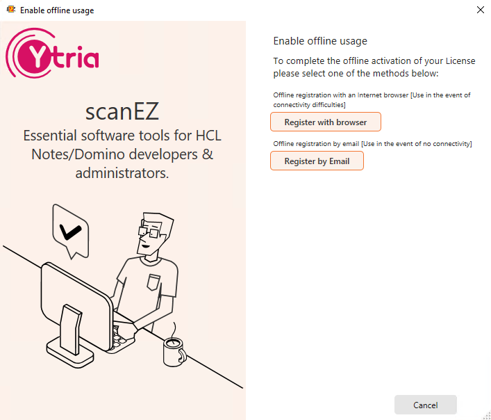 If needed, the URL to the Offline registration form is the following: https://www2.ytria.com/WebSite.nsf/Ec_OfflineReg?OpenForm&lan=en