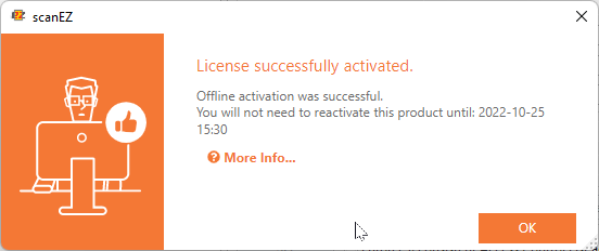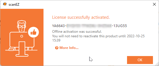 In the end, a message box will tell you the license has been successfully activate, with a recap the situation: