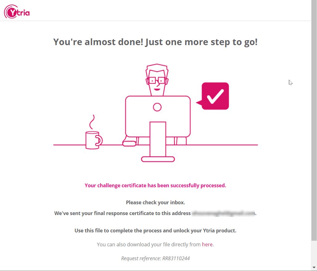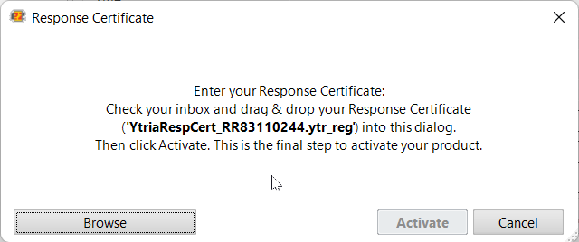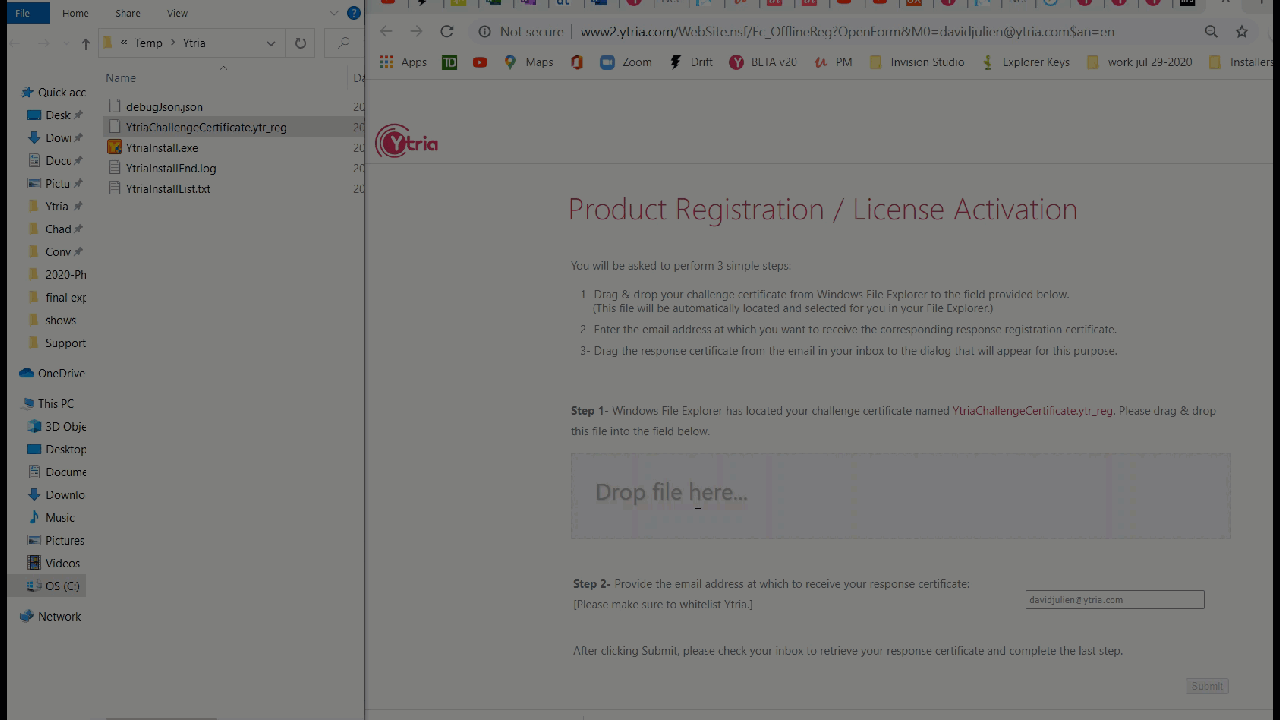 Drag this challenge certificate [YtriaChallengeCertificate.ytr_reg] into the browser dialog. Click Submit.