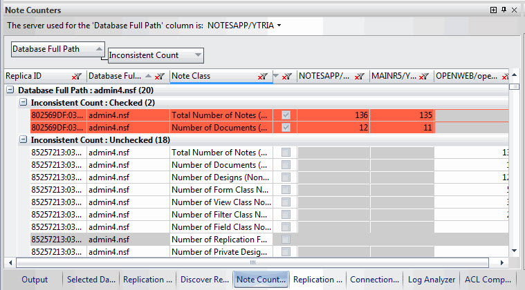 The Note Counters tool in replicationEZ allows you to compare the contents of replicas across servers to spot inconsistencies.