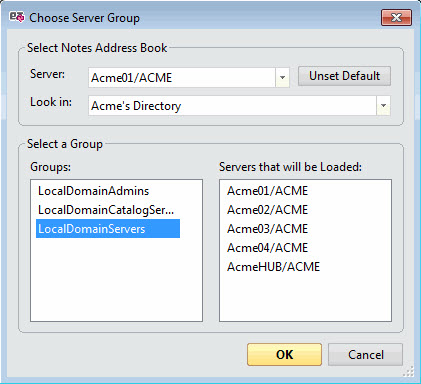 The Choose Server Group dialog