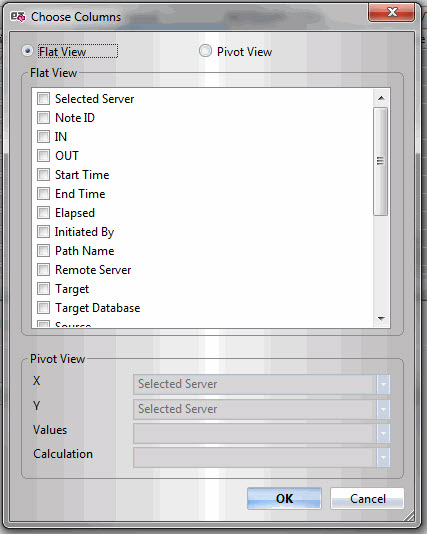 After you choose the server or servers for log analysis, the Choose Columns dialog will appear. Here you can choose between a 'flat view' (normal grid-type display) or a 'pivot view' (which is akin to a pivot table in a spreadsheet application).