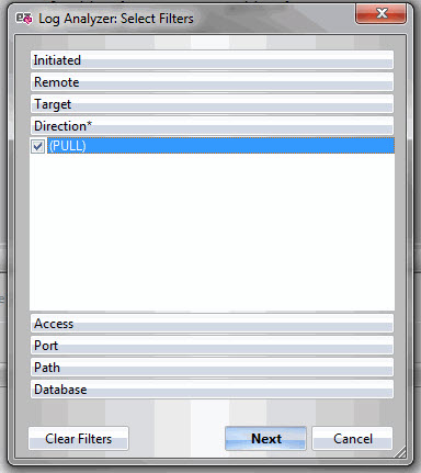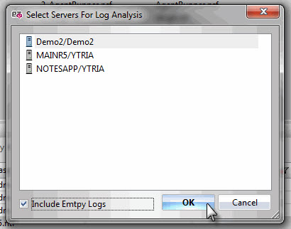 In order use the Log Analyzer tool, click Log Analyzer in the tools menu. After this you'll be prompted to choose server or servers for log analysis. Only servers currently open in replicationEZ will be listed.
