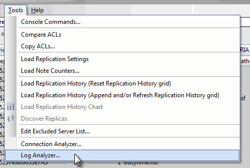 Access the Log Analyzer from the Tool menu
