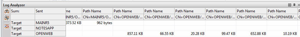 This is an example of Pivot table view (X = "path name; Y = "target"; Values = "sent"; Calculation = "Sum")