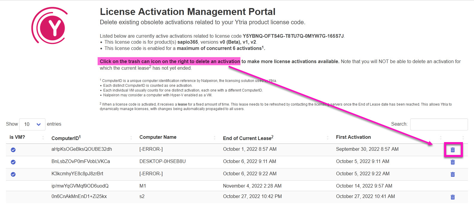 You can also access directly the License Activation Management Portal from this address: https://www2.ytria.com/LicActMgt.nsf/