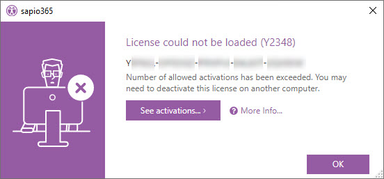 Once this limit has been reached you may encounter the message: Number of allowed activations has been exceeded: