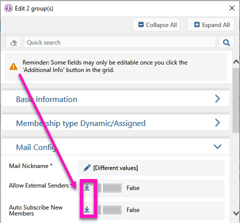 You must load additional data for these groups before editing these properties.