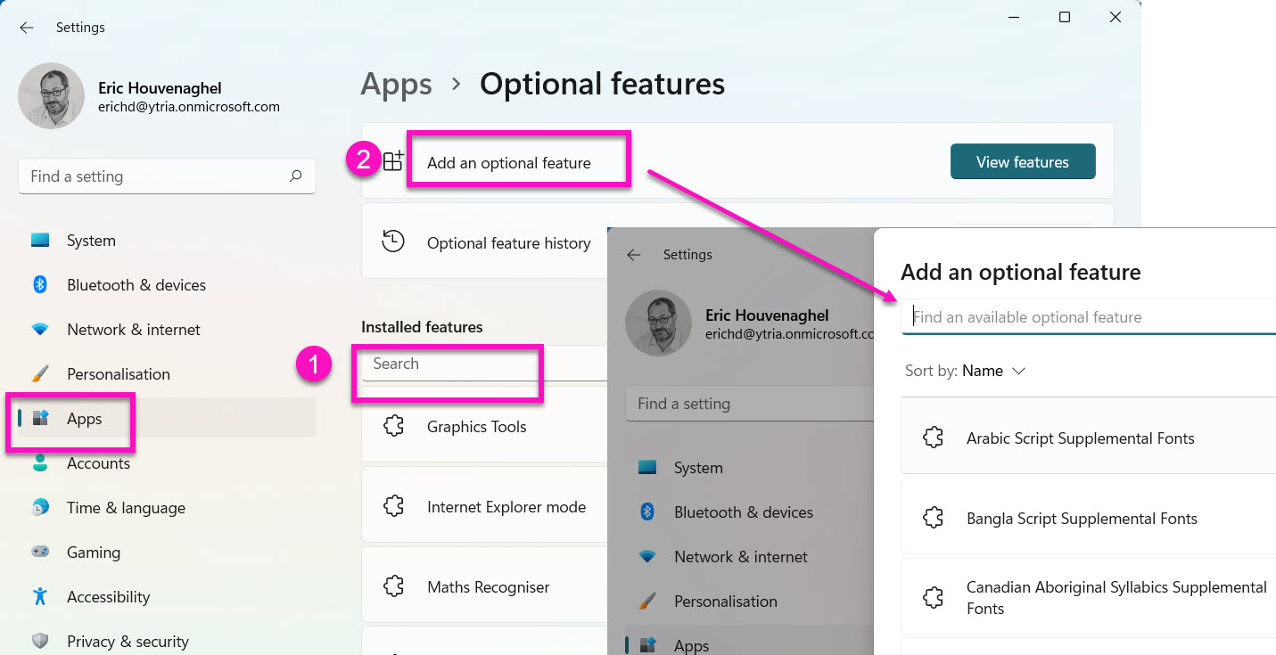 In Windows 11, go to Settings > Apps > Optional features