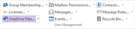 From the Users window, select users and retrieve information about their OneDrive content by clicking on the "OneDrive Files" button.