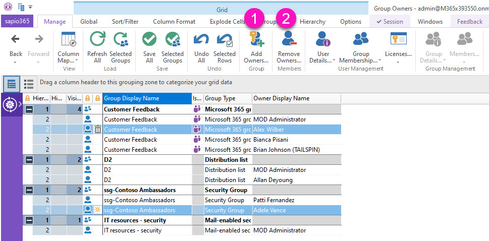 Select owners from groups to remove them with the “Remove Owners” button.