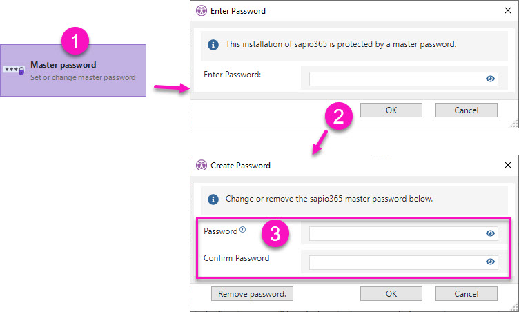 If you have tasks/jobs that are currently scheduled to run, and you set a Master password, they will not be able to be executed because sapio365 will request a password.