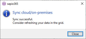 Force Sync in sapio365 should now work, and you will see this message to remind you to refresh your grid data.