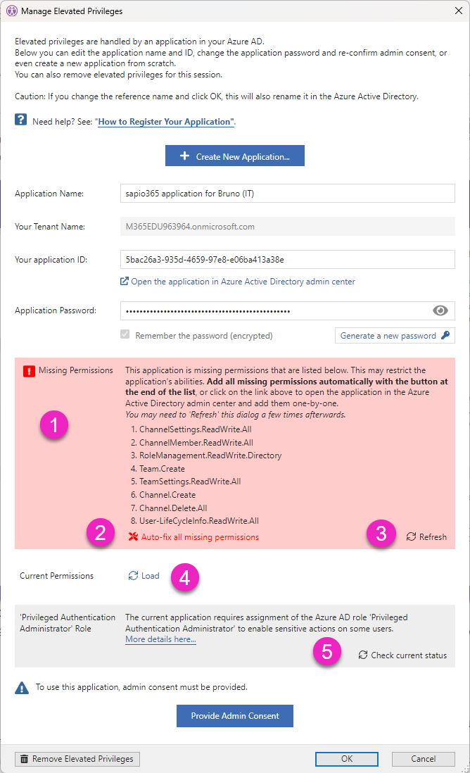 Clicking on the button “Refresh” in [3] will check the situation again in case you fixed the permissions directly from the Azure AD portal.