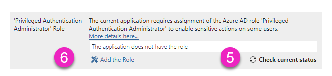 Clicking on the button “Check current status” in [5] will show if the application has the role enabled.