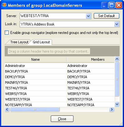 | Show Group Members | Displays the group members of the selected group |