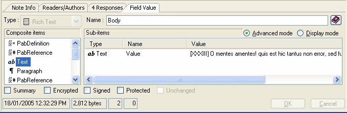 By default, when you select a Rich-text item in a document, you can only display its content. If you switch to advanced mode, you can edit its content.