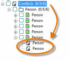 In the Conflicts category of the Selection Tree, scanEZ lists all conflicts in the current database. The conflicts are categorized by form name, and by parent document. By default, the title displayed for each parents and conflicts is the form name. See Changing the scanEZ Selection Tree text for details on how to change it.