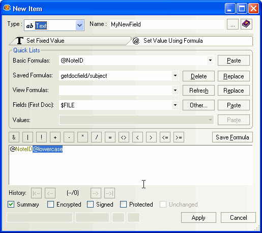 | TIP | As of scanEZ version 10, the formula history is automatically saved to disk in a file named "YtriaFormulaHistory.sfd" in your Notes data directory. The last 99 formulas used will be saved. The formulas can be instantly shared between open sessions of scanEZ. In addition, you can click the Save Formula button if you'd like the option of permanently saving a formula. |