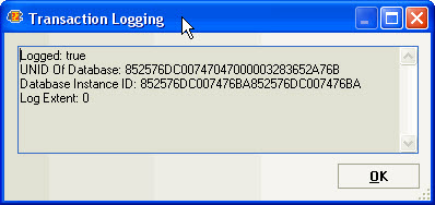 | Replication history | Displays a report of replication history for this database. This will display the same information as in the Lotus Notes client, but you can export it to a file. |
