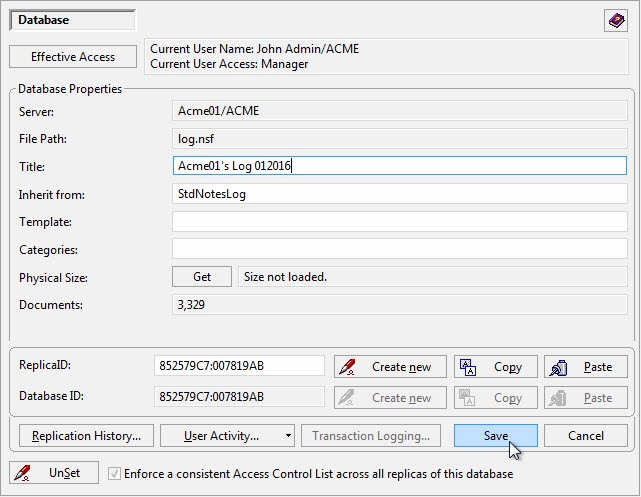 | Physical Size | Same information as found in the IBM Notes client's Database info tab. |
