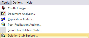 The Deletion Stub Explorer lists detailed information about all the deletion stubs in a database.