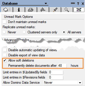 For example, when an email is sent to the trash in a Domino mail database, it is considered to be a soft deleted document until the trash is emptied.