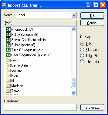 - Use the Import ACL from... button to apply another database's ACL to the current one.