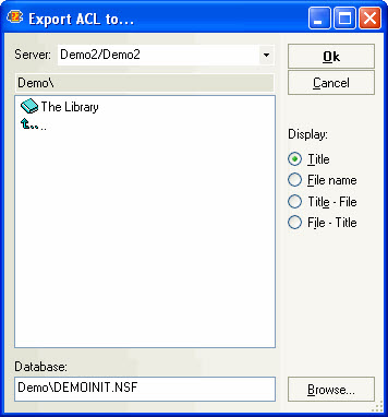 - Use the Export ACL to... button to export the current database's ACL and apply it another database.