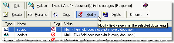 | Edit field(s) | Edit selected field(s) in all documents in the document collection |