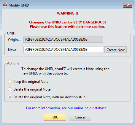 This feature is used to change the UNID of a note.