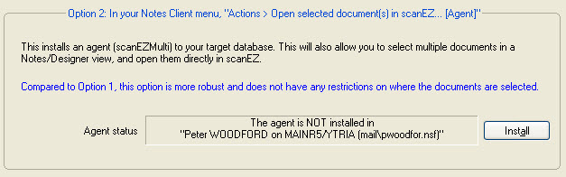 This procedure will add an agent to your target database, in the menuActions > Open selected document(s) in scanEZ...[Agent].