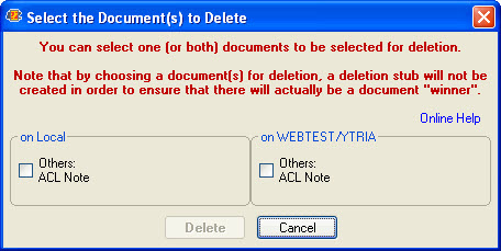 | Delete Document(s)... | Delete the selected document(s). You can choose which side will be deleted. No deletion stub will be created to ensure there will be a winner. This command is a quick way to prevent some conflicts that the Replication Auditor lets you know will otherwise occur.