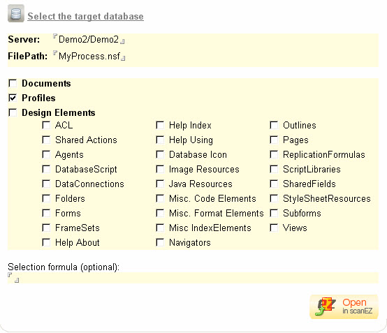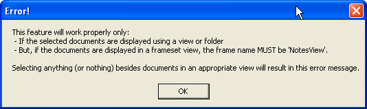 A multi-selection tool is part of the standard scanEZ installation process; it adds an 'Open selected documents in scanEZ' item to the Actions menu in your IBM Notes client. This feature supports opening multiple documents from a IBM Notes view or folder. However, if you're working with frameset views, the Notes API strictly requires the frameset to be named 'NotesView' in order for this feature to work.