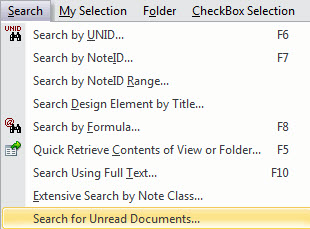 The Search for Unread Documents function counts the number of unread documents in a database for one or more selected user(s).