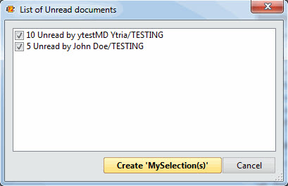 The Unread documents are listed by user; you can select the one(s) you need to create new MySelections.