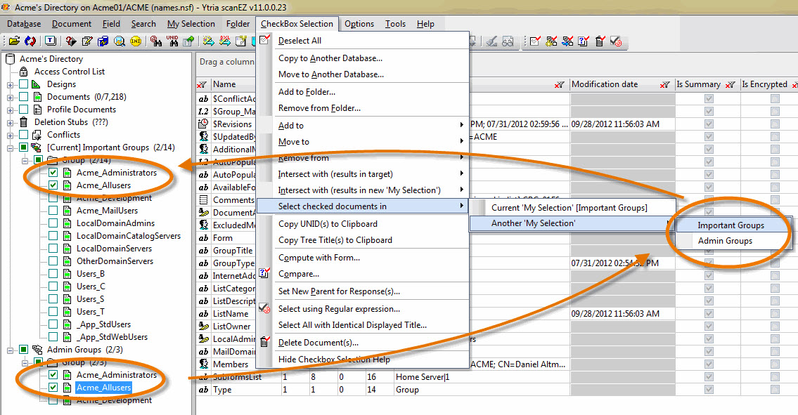 Select checked documents in option: