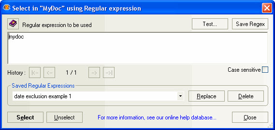 The Select Using Regular Expression feature allows you to create Selection Tree checkbox selections based anything from a basic text match to a complex regular expressions. You can find the Select Using Regular Expression feature in both the Checkbox Selection menu and the contextual menu that appears when you right-click a My Selection virtual folder.