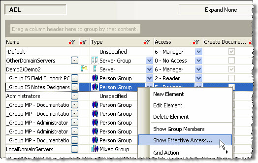 | NOTE | Lotus Notes defines 'Effective Access' as "a run time calculation of the user's rights taking into account all of the user's group membership." |