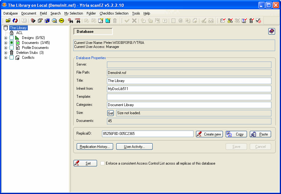 In the Selection Tree on the left-hand side of scanEZ, you can see all your design notes, documents, profile documents, deletion stubs, save (replication) conflicts.