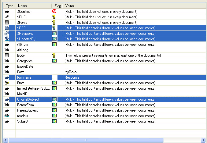 After performing a Diff, you might want to see the details of certain fields, for instance fields with different values between documents or fields which do not exist in all the documents.