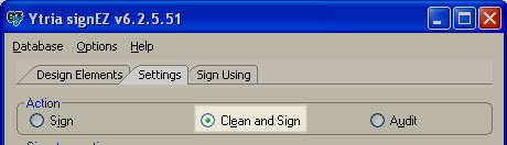 In the Settings tab, select Clean and Sign as your action.