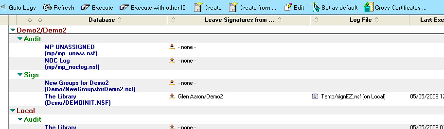 | Install/Sign Database with Current ID (These options were moved to the left frame in version 9.1.3) | Re-install signEZ; sign the signEZ database with the current ID |