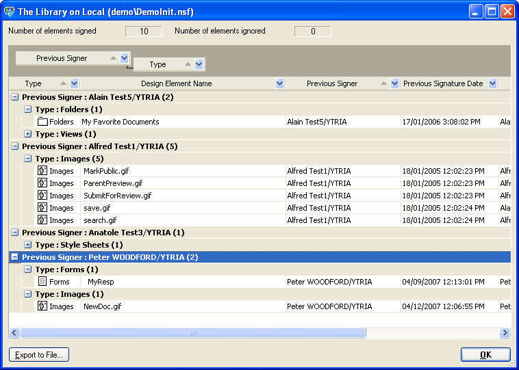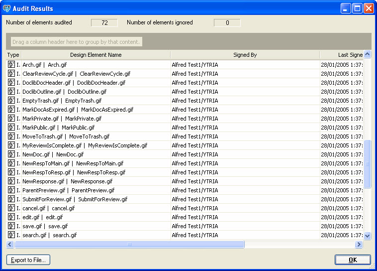 Whenever you use the Sign, Clean & Sign, or Audit functions in signEZ the results of the operation will be displayed in a Report window immediately after the action is completed. The Report window uses the grid interface.