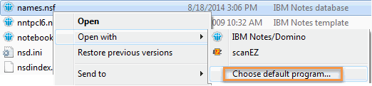 To do so, right-click on the nsf file in your Windows Explorer and select 'Choose default program'.